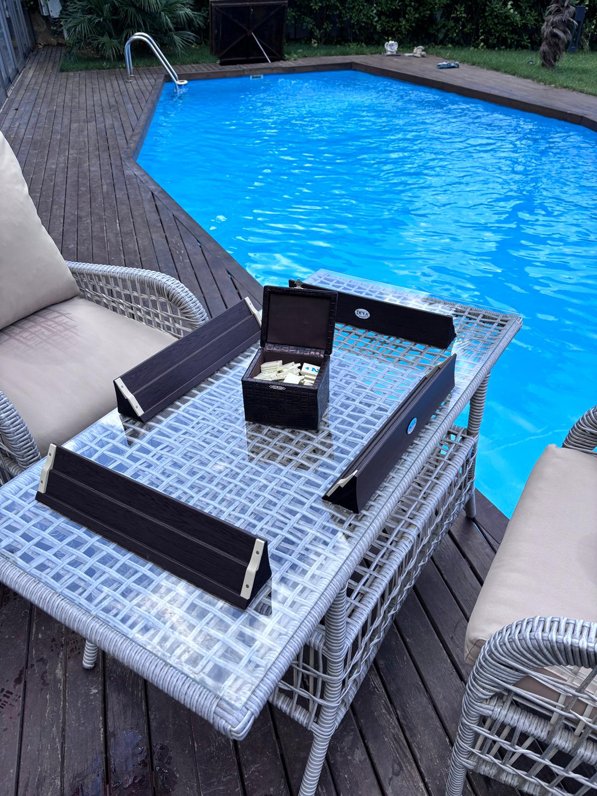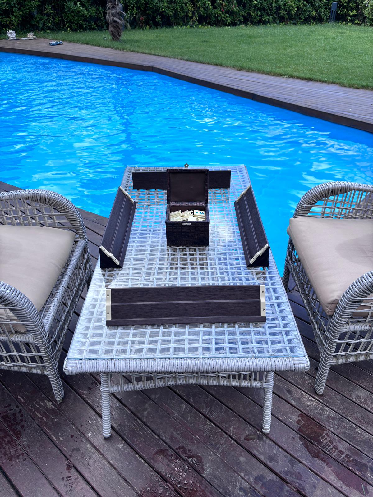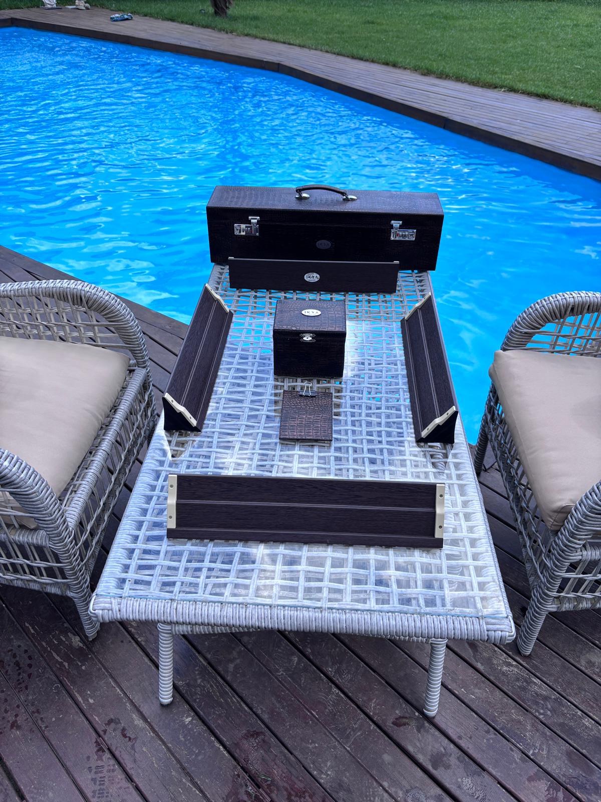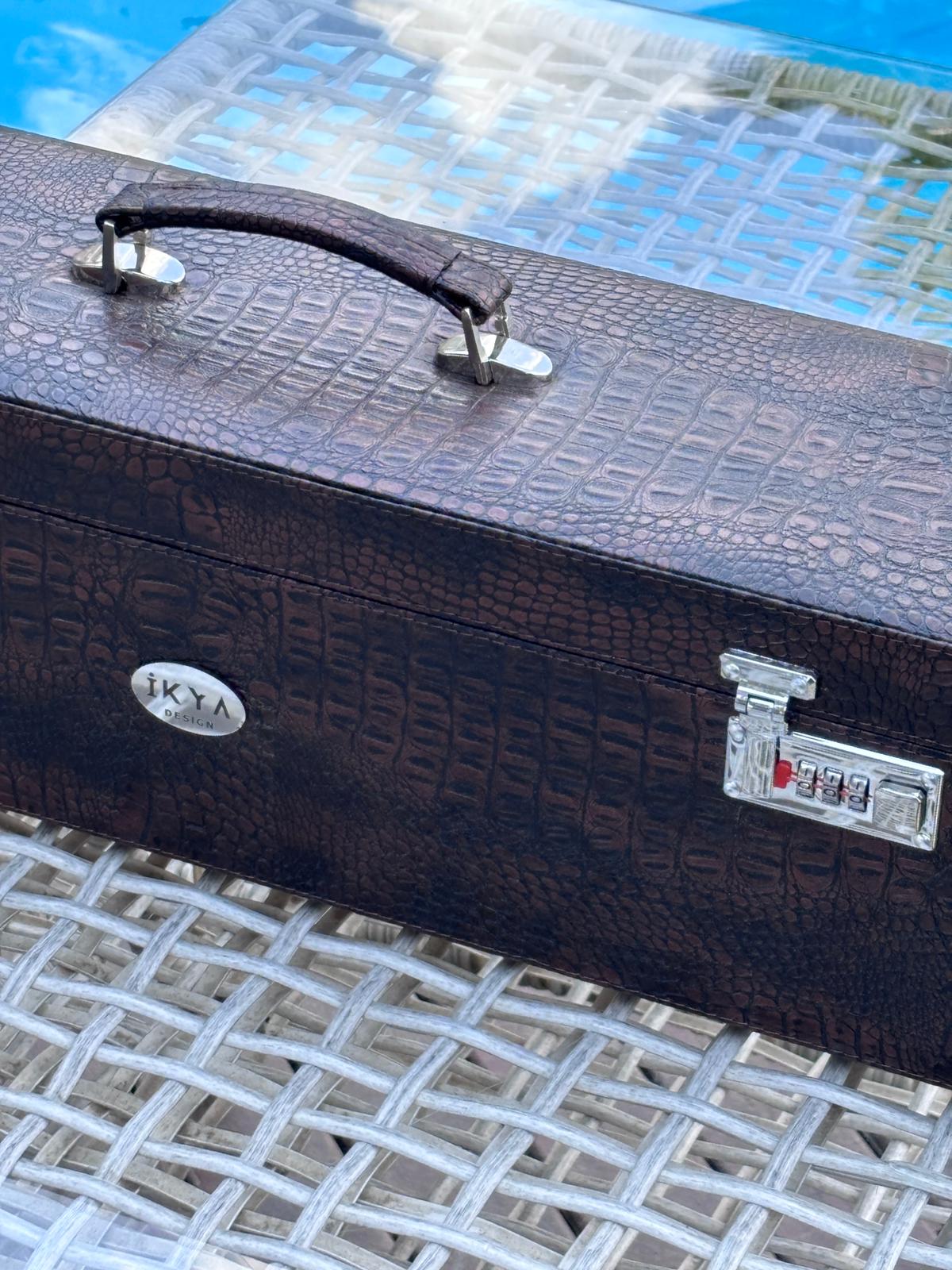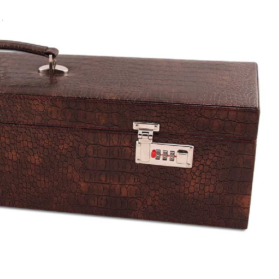 Deri taşıma kulplu özel şifreli kilit sistemli okey kutusu